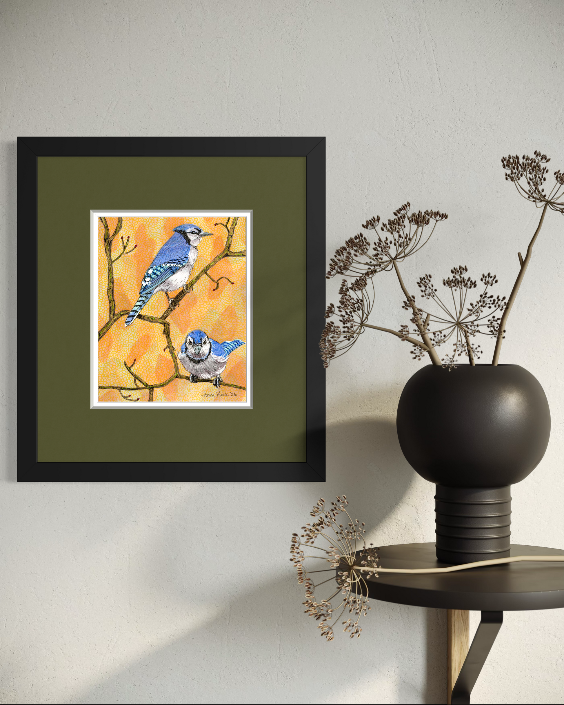 This print is reproduced from the original mixed media drawing and printed on archival quality paper. It is available in two sizes, 5x7 and 8x10, and arrives ready to frame. It is a wonderful piece for anyone who has ever stopped to really look at a bird they thought they already knew.